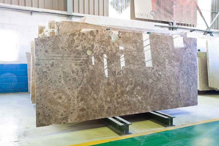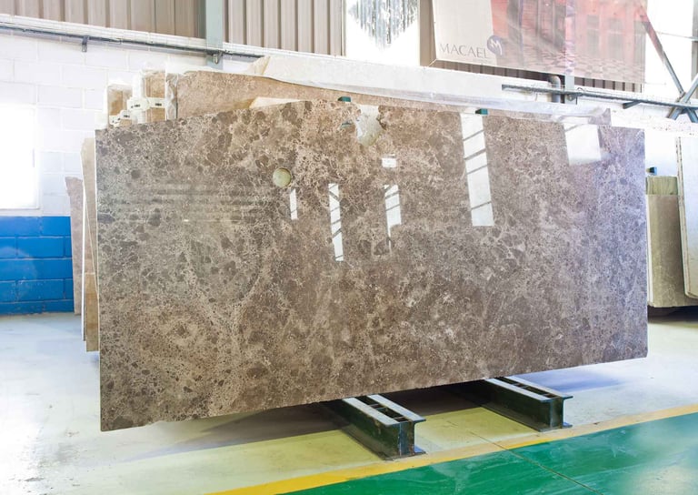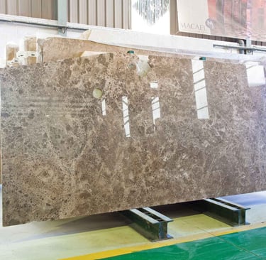 Macalux Pearl Marble es un mármol de origen Macael con una paleta cálida y sofisticada, donde los tonos marrones perlados se entrelazan con vetas suaves en blanco y gris.