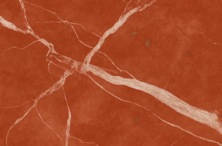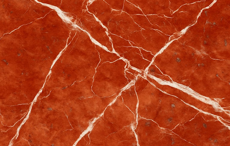 Mármol de personalidad vibrante y elegante. Su fondo rojo intenso, atravesado por vetas blancas y gris claro, crea una composición natural de gran fuerza visual y equilibrio cromático. Cada tabla es una pieza única donde la energía de la piedra se convierte en diseño.